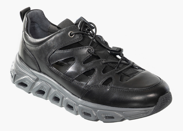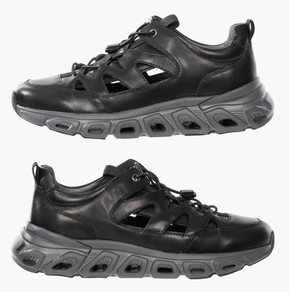 Верхняя часть полуботинок имеет перфорацию по всему периметру и эластичную шнуровку с фиксатором. Формоустойчивый задник фиксирует пятку, предохраняя стопу от завала. Вкладная ортопедическая стелька поддерживает своды стопы и распределяет нагрузку. Модель выполнена полностью из натуральной кожи. Устойчивая подошва из материала ЭВА/ТЭП хорошо амортизирует и поглощает ударные вибрации, защищая стопы и суставы. Легкие полуботинки подходят для прогулок в городе в теплую погоду.